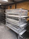 Загальний опис конструкції Дно клітки виготовлено з зварної дротяної сітки 12х25 мм. Весь дріт оцинкований, товщиною 2.0 мм. Бічні частини клітки, внутрішні перегородки, зроблені з дротяної сітки 12х25 мм. і жорстко з'єднані з підлогою і між собою пневматичним скобообжимним інструментом. Передня стінка клітки виготовлена з дротяної сітки 25х50мм. По краях сітки встановлений профіль для жорсткості і безпеки. Каркас виготовлений з кадратного профілю 25х25. Під кожним рівнем встановлена система пометовидалення з саморегулюючими скребками з нержавіючої сталі. Клітка складається з 3-х розбірних ярусів, які встановлюються один на один. Можливий продаж ярусів окремо. У кожній секції зроблені по 2 дверці. Під ними і по всій довжині є щілина для скочування яєць в яйцезбірник також система напоювання з заді кліткиПризначення